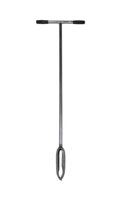 This auger is used for soils with a large gravel content. The auger body for stony soils consists of a heavy steel strip, vaulted all along, which is bent double by forging. The pointed cutting section of the strip is bent outward, thus creating a hole significantly wider than the average body diameter. The stony soil auger is used when the Riverside auger is not yielding adequate results in coarse gravel soils.