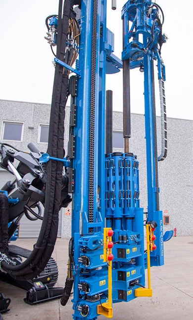 The MITO 25 drill rig offers many options through a wide range of equipment including: rotary heads for different drilling scopes, hydraulic hammers, double head systems, water/mud pumps, as well as drill pipe/casing loading systems.