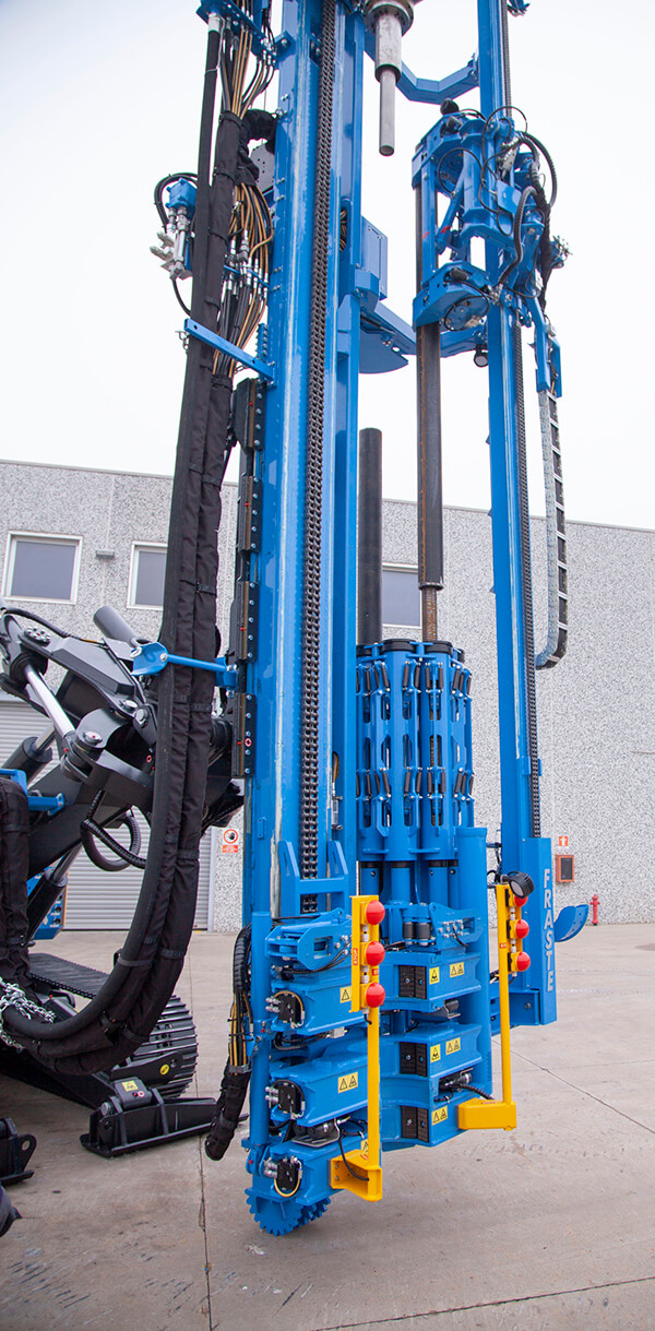 The MITO 25 drill rig offers many options through a wide range of equipment including: rotary heads for different drilling scopes, hydraulic hammers, double head systems, water/mud pumps, as well as drill pipe/casing loading systems.
