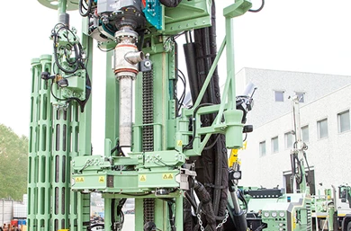 The Fraste MITO 35 is available in a regular and TB version, which includes a drill pipe and casing carousel mounted to the drill mast. This loads both pipe and casing simultaneously in a completely automated, rapid process, and can hold up to 9 drill pipes and 9 casings in varying diameters.