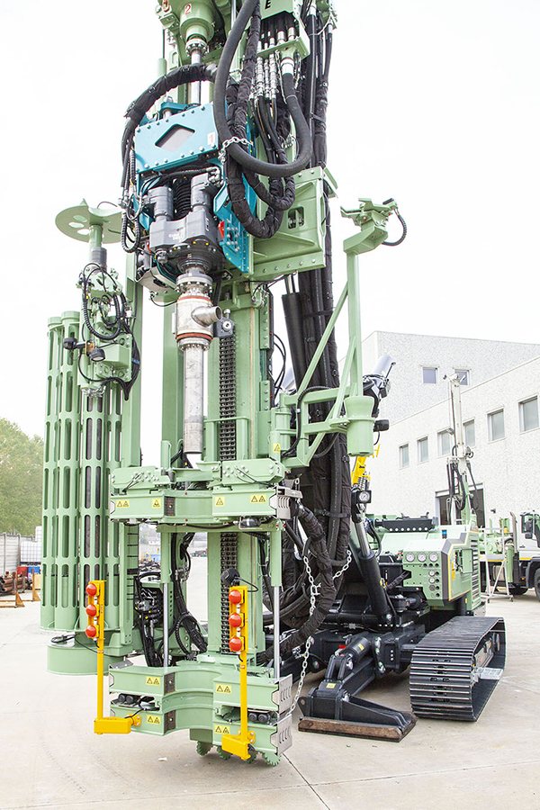 The Fraste MITO 35 is available in a regular and TB version, which includes a drill pipe and casing carousel mounted to the drill mast. This loads both pipe and casing simultaneously in a completely automated, rapid process, and can hold up to 9 drill pipes and 9 casings in varying diameters.