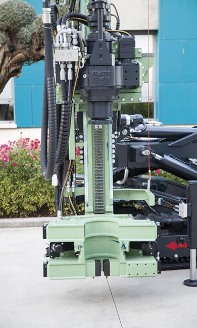 The hydraulic remote power pack enables this rig to easily work inside buildings and other small spaces. It is available with many options and customizations.