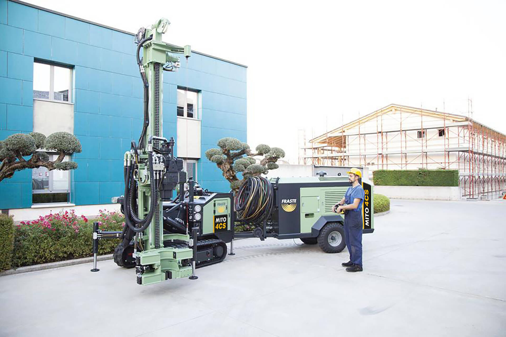This MITO 4 CS (formerly 40 CS) comes as a two-piece drill rig, with a power pack separate from the drill head and controls. These small dimensions make it perfect for foundation drilling in tight spaces.