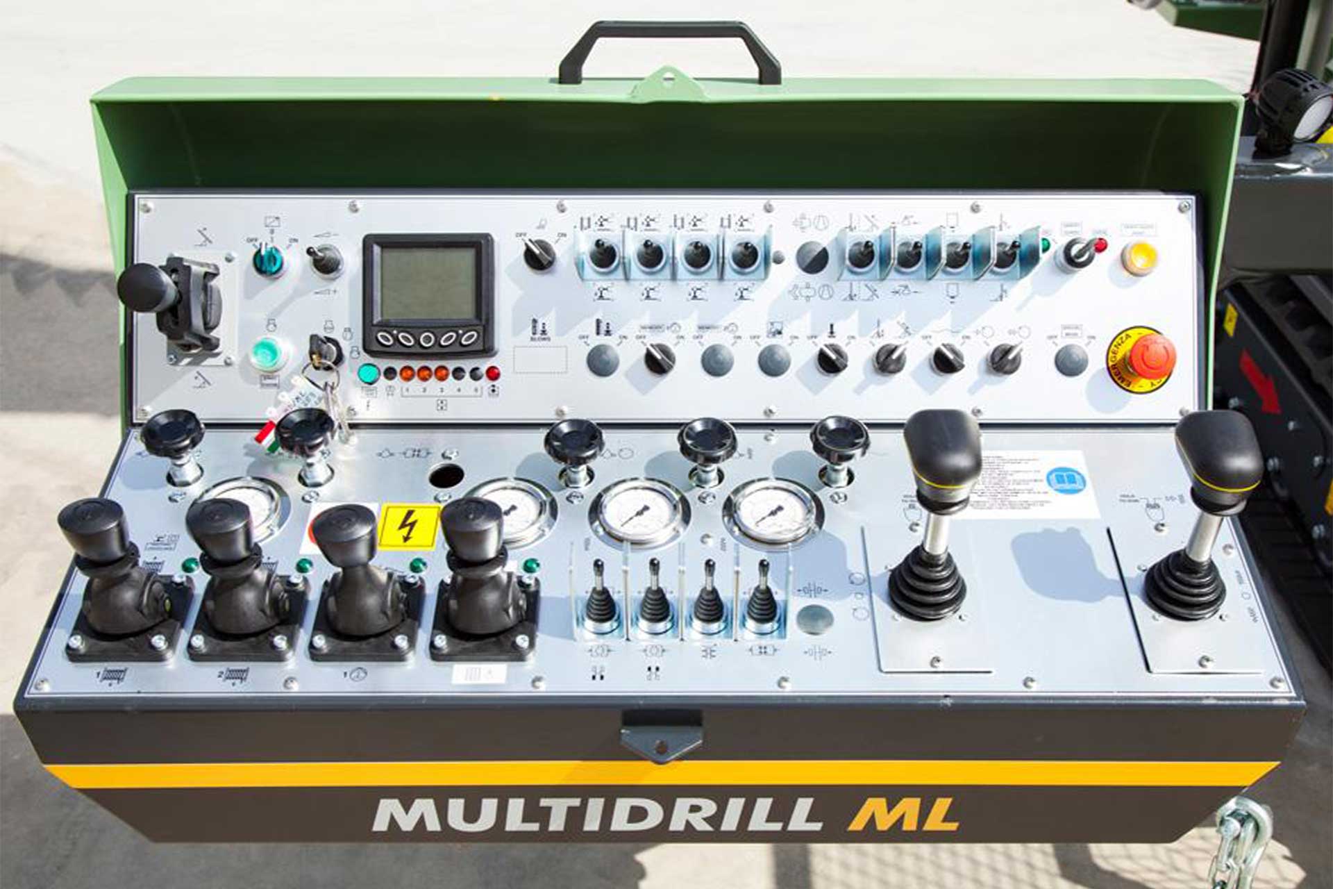 You can use the rig for soil investigation, environmental monitoring, and for drilling wells. Thanks to its new design, Stage 4 Final engines, top quality components and great care for operator safety, the Multidrill ML is ideally suited to work with all drilling systems. It is suitable for rotary drilling with direct/reverse fluid or air circulation, DTH hammer, roto-percussion system, conventional and wire drilling techniques. Finally, a wide range of accessories is available to meet all your needs.