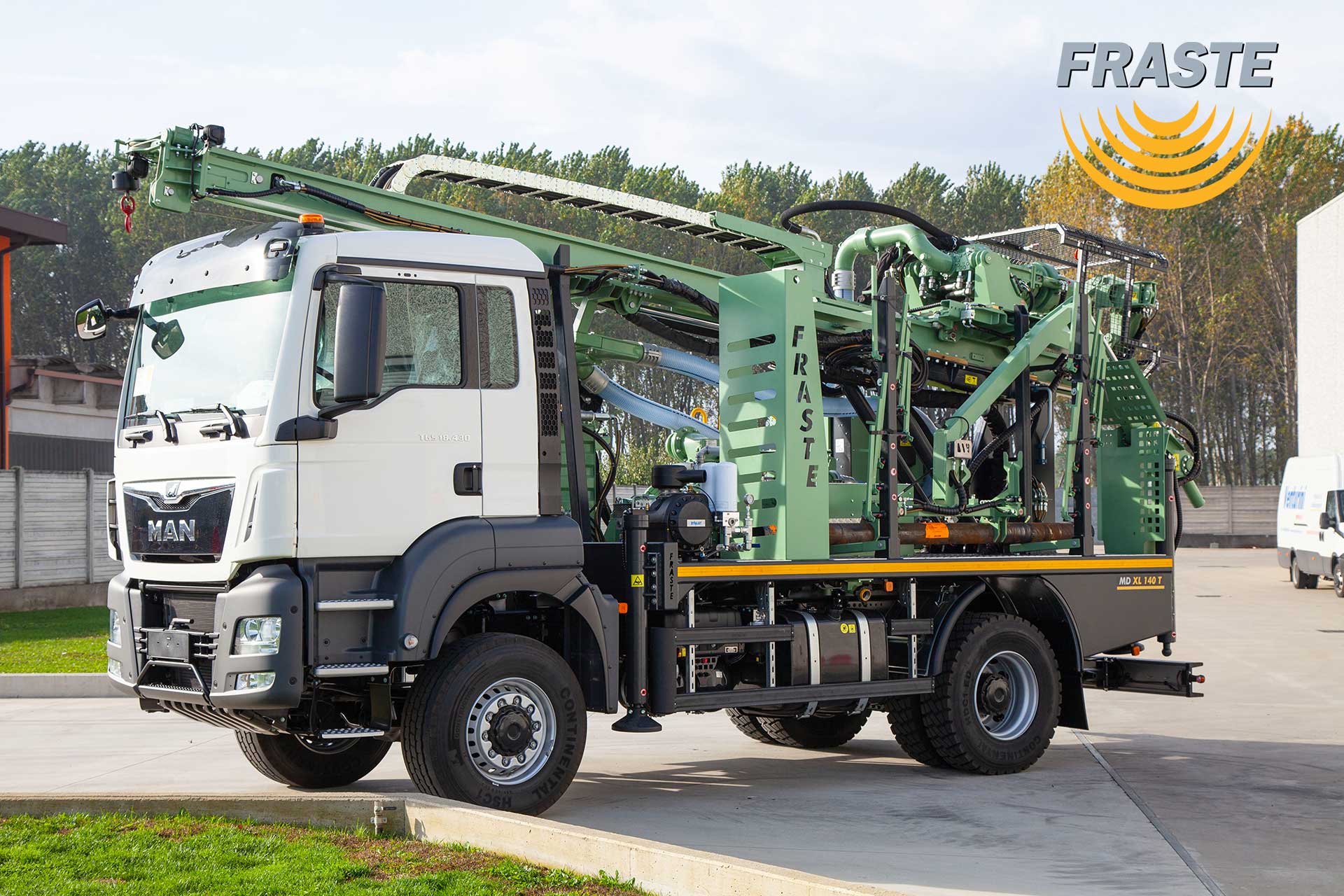 The FRASTE Multidrill XL 140 T, like its tracked variant, is flexible and powerful. Despite its relatively small size, it delivers the best performance in the field. The truck version can be adapted to any drilling system thanks to its simple modular construction and high technological content.