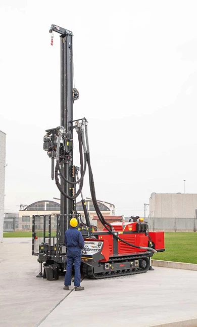 The FRASTE MX 170 Plus is a complete, dynamic, and high-quality drilling rig, always ready for different purposes, and customized for the mining industry. The drilling rig is equipped with a drill pipe loading system, for safe and ergonomic working conditions.
