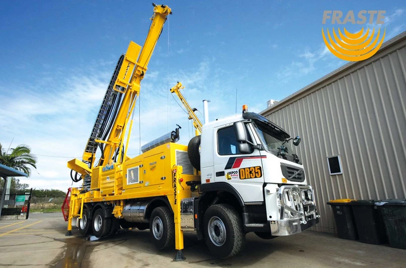 The FRASTE MX 250 conventional rig is a powerful and innovative machine. The drilling machine can be built on a tracked chassis but also on a truck chassis. The FS 250 is customized for the mining industry but is also suitable for drilling water wells, water reservoirs and other applications.