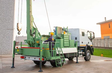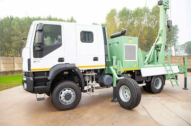 Mounted on a truck with two or three axles, the SR 14 Service Rig can be operated by the vehicle engine through the Power Take Off (PTO) device or by using an auxiliary engine. With many customizable options, this service rig makes drilling easier.