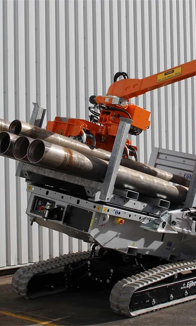 This completely independent bi-energy service vehicle was designed to make drilling easier and safer. It’s equipped with the remote controlled ManipAll 250 RC that offers a lifting capacity of 200 kg or 440 LBS. The vehicle comes with a removable tooling rack for easy pick-up and drop off of tooling at the jobsite, with up to 4,000 kg or 8,818 lbs of loading.