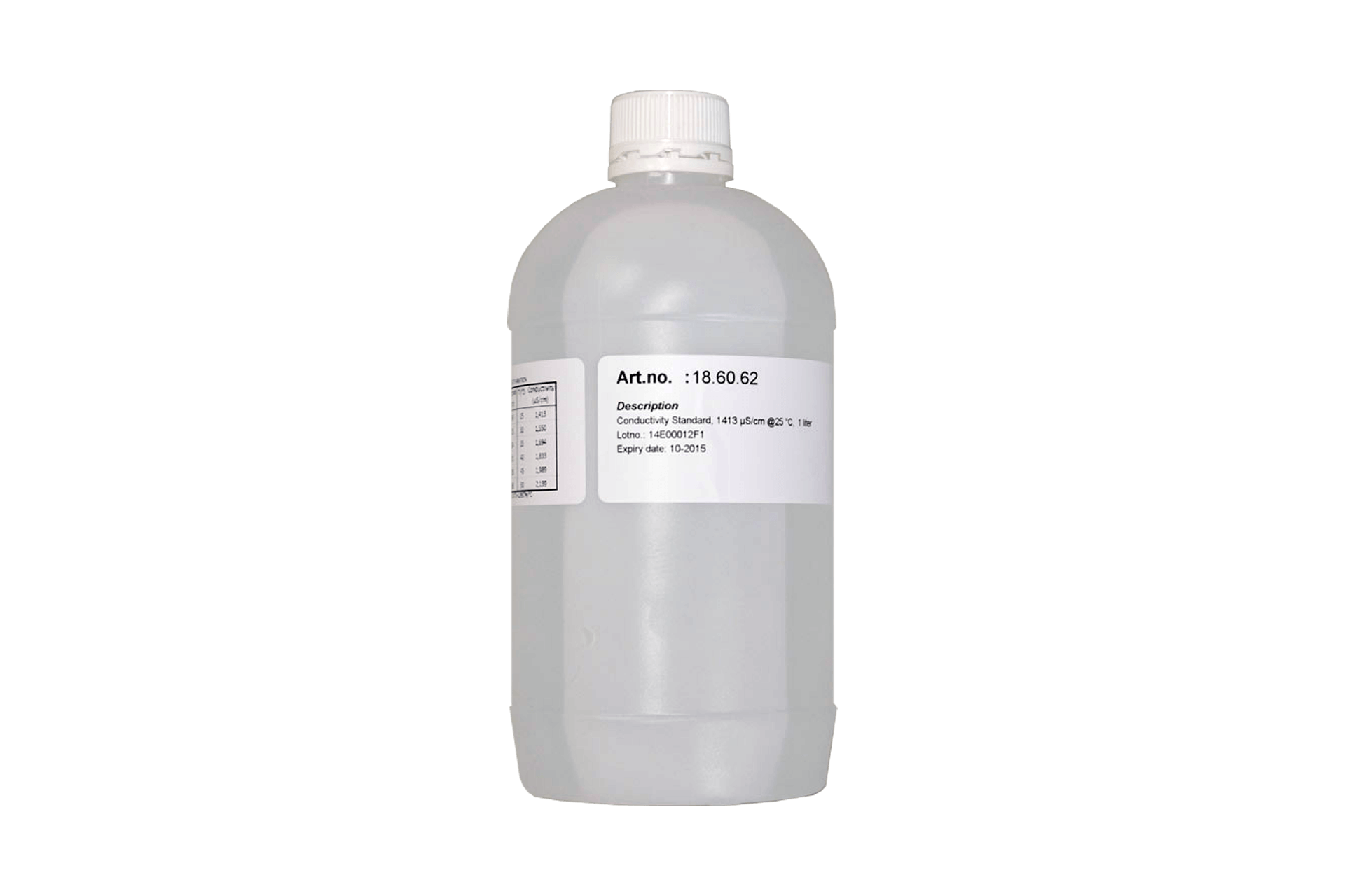 Calibration liquid for EC meters, 1413 microS/cm (0.01 Mol) KCl, bottle of 1000 ml.