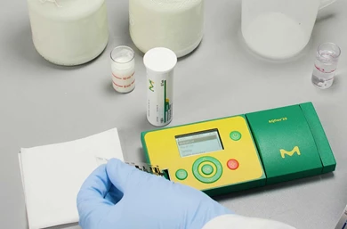 This measuring system consists of various analysis strips for different parameters and the reflectometer. Each type of analysis strip has its own barcode; before using the strips, this barcode must be placed in the meter for adjustment and control. High accuracy measurements due to double optics and load specific adjustment of the test strips.