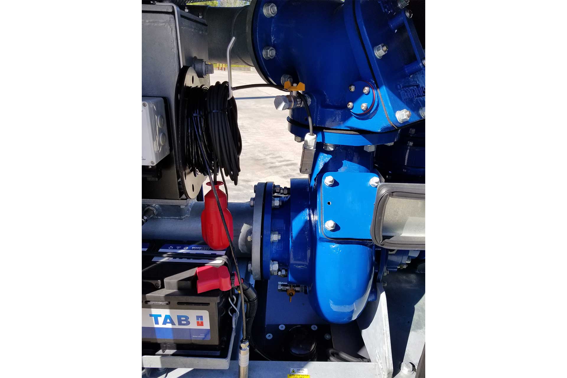 The Screw Impeller Pump 6 is a multipurpose pump that can handle both clean and dirty water, with large solids handling capabilities. It is a mobile, diesel-powered unit with an integrated vacuum system.