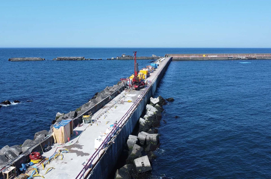 The jetty itself consists of high-density concrete with heavy rebar and all kind of rubble. Not the easiest drilling conditions. However, our True 150Hz powers through with ease, demonstrating the full durability of our machines despite the extreme winds, waves, and temperatures.