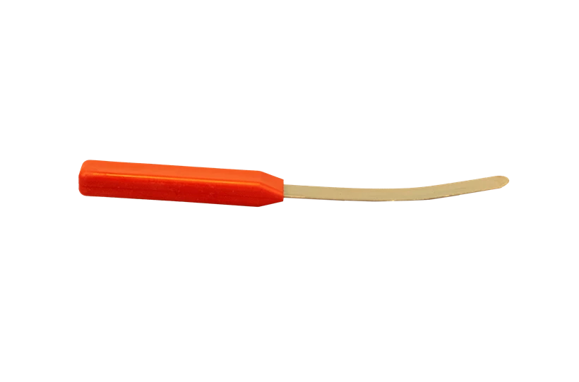 Gebogen spatel voor het makkelijk uithalen van monsters uit een gutsboor.