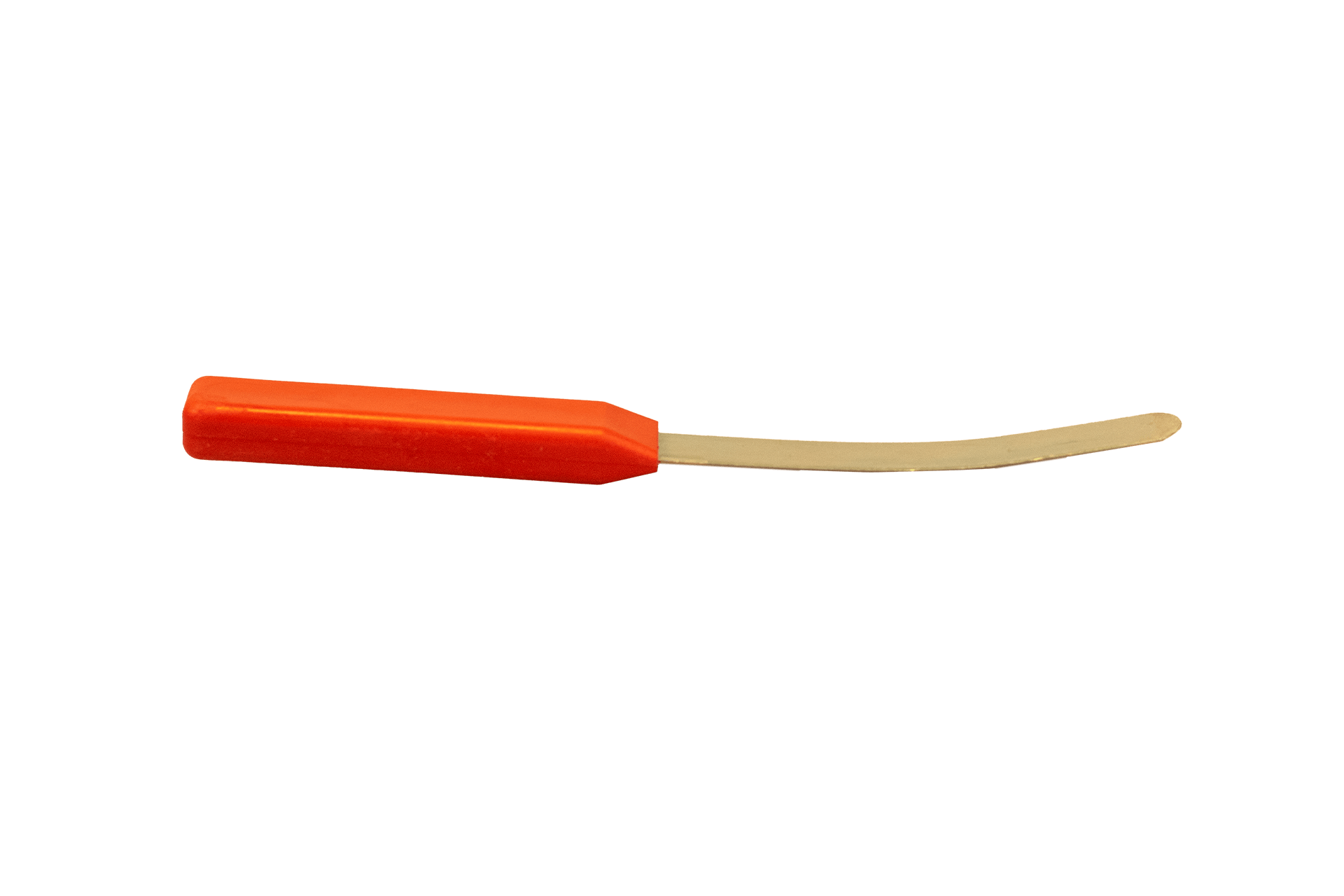 Gebogen spatel voor het makkelijk uithalen van monsters uit een gutsboor.