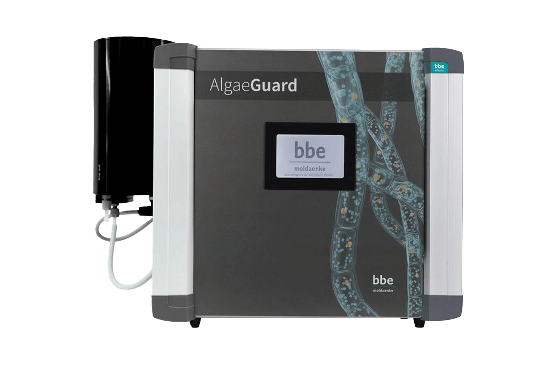 Voor het continu meten van chlorofyl. De AlgaeGuard onderscheidt groene algen, blauwalgen (cyanobacteriën), diatomeeën en crytofyten in een doorstroomkamer.