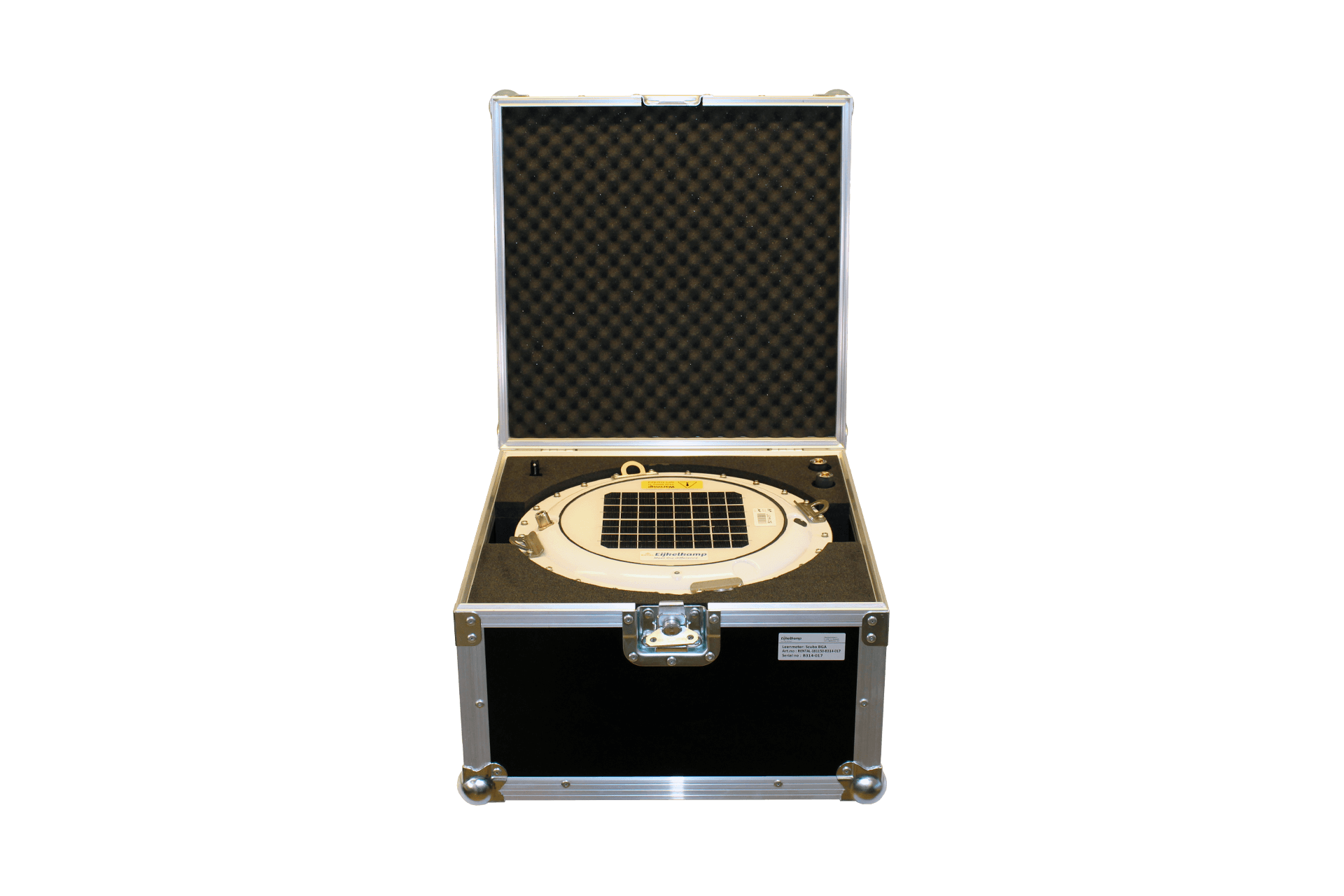 Stevige flightcase voor transport en opslag van de Scuba BGA boei, voorzien van hardschuim ter fixatie.