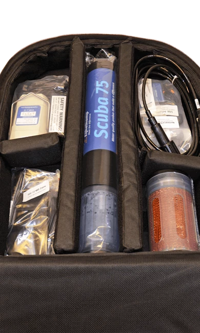 De softcase kan gebruikt worden als rugtas maar kan ook gemakkelijk in één hand worden gedragen. Hij is groot genoeg voor een Scuba-sonde en alle benodigde accessoires. Daarnaast beschikt de tas over een opbergvak aan de voorzijde, waar bijvoorbeeld een tablet in kan worden opgeborgen.