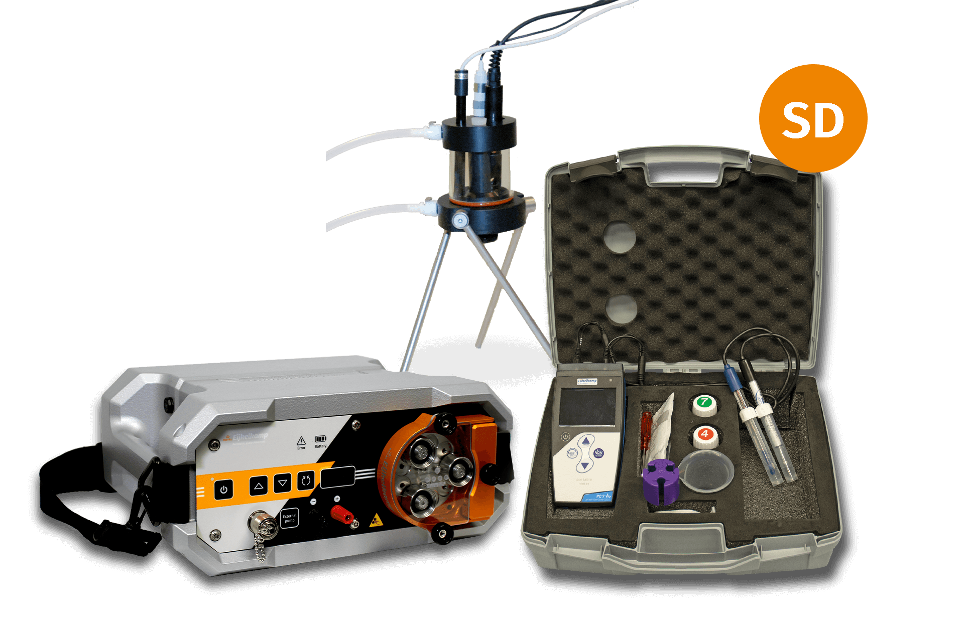 Complete set om (grond)water te bemonsteren en direct diverse waterkwaliteitsparameters te meten.