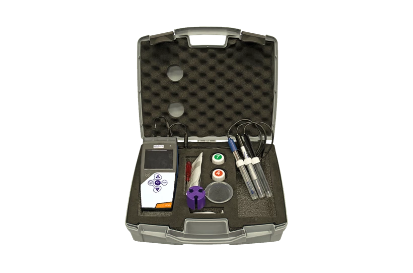 Complete set voor het meten van pH, EC en zuurstof in water, geleverd in handige koffer.