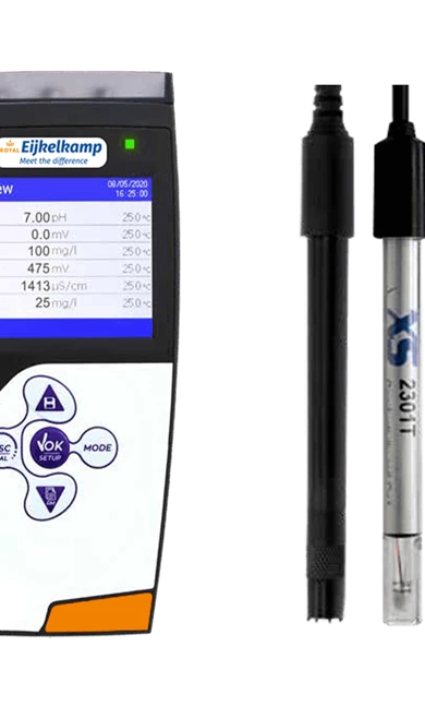 De pH/EC/zuurstofmeter voor water is een professionele, draagbare waterkwaliteitsmeter. Het heeft een innovatief kleurendisplay met hoge resolutie, met instelbaar contrast en helderheid, waardoor u het instrument in verschillende weersomstandigheden kunt gebruiken. Het instrument bevat een pH-, EC- en polarografische zuurstofelektrode met ingebouwde temperatuursensor.