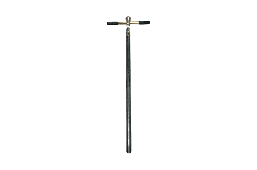 The single gouge auger is used to take samples in hard soils. This gouge auger takes samples to a depth of 1 metre and a diameter of 3 cm.