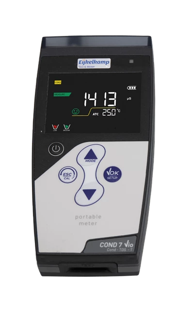 This Electrical Conductivity (EC) meter is a portable and user-friendly instrument to measure EC in the field. The onboarding guide in setup and calibration mode allows a simple and intuitive use of the device. The EC is an indication of the amount of salts dissolved in water. As the concentration of salt may be a limiting or stimulating growth factor, or an indication of soil pollution, it is essential to establish the EC.