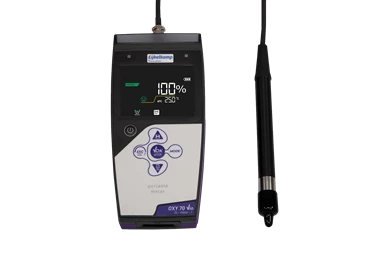 Besides measuring (dissolved) oxygen, it is also possible to measure saturation percentage and barometric pressure with temperature display. The online guide for set-up and calibration allows easy and immediate use of the device.