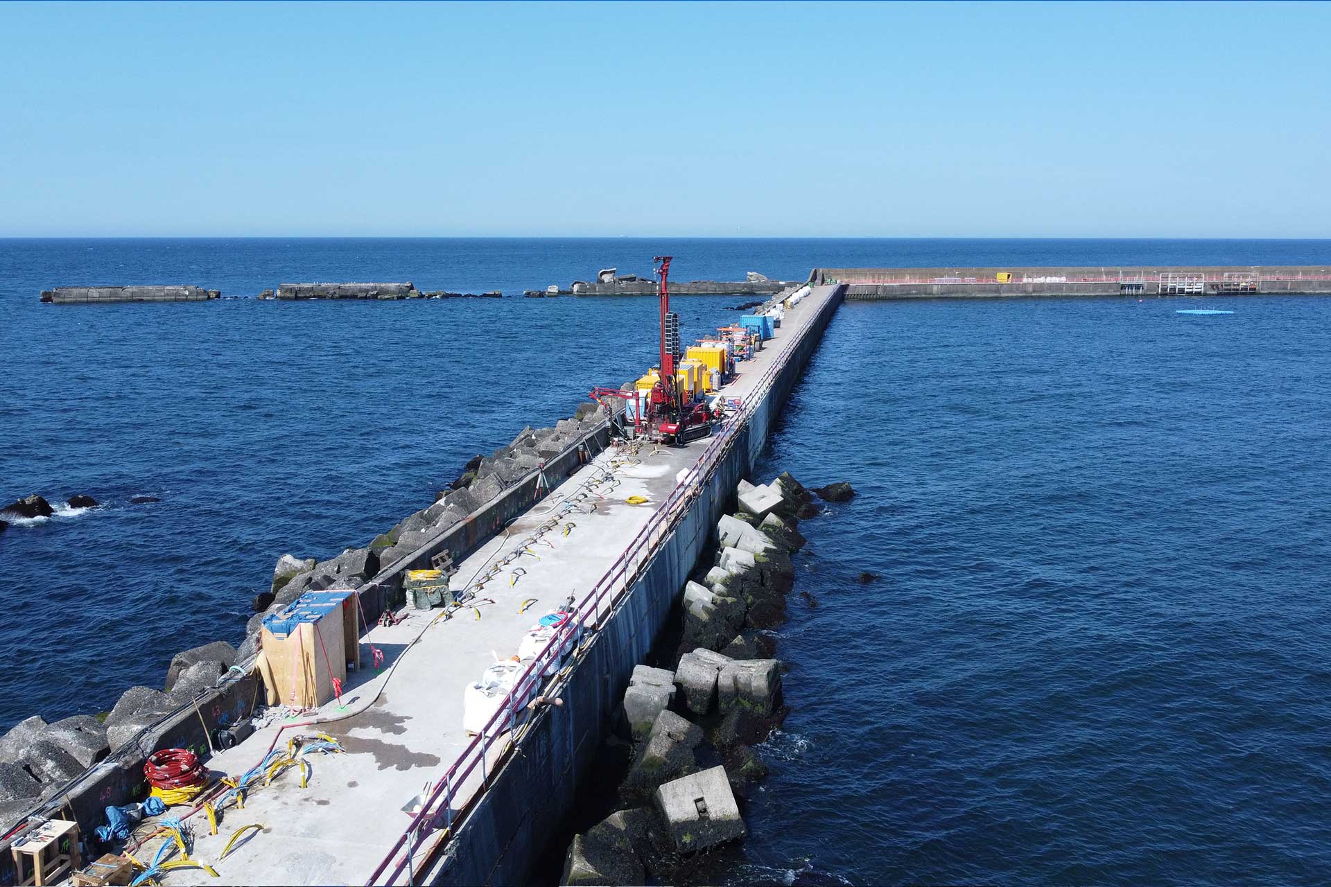 The jetty itself consists of high-density concrete with heavy rebar and all kind of rubble. Not the easiest drilling conditions. However, our True 150Hz powers through with ease, demonstrating the full durability of our machines despite the extreme winds, waves, and temperatures.