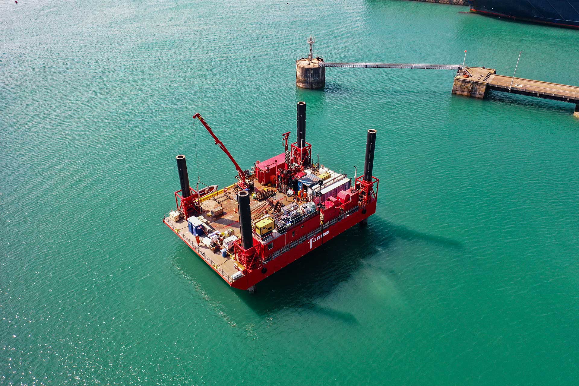 Located off the port of St. Helier Jersey, our client Fugro conducts 7 marine boreholes for geotechnical sampling with our CRS 170 DUO. The sonic rig is positioned on an Aran 250 Jack-up barge where it can access the drill locations on the water despite the large tides and unpredictable marine conditions.